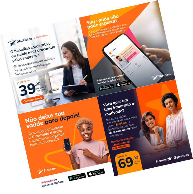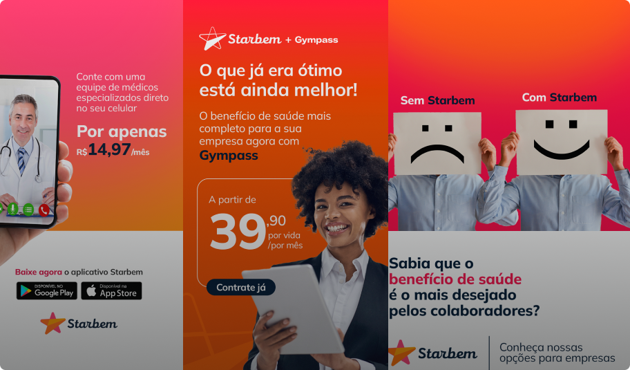 A Starbem é uma HealthTech brasileira com presença mundial que oferece soluções de atendimento Online de Saúde B2C e B2B, com diversas especialidades como psicologia e nutricionistas, e também parceria com soluções GymPass e TotalPass para melhor atender as necessidades de benefícios corporativos.